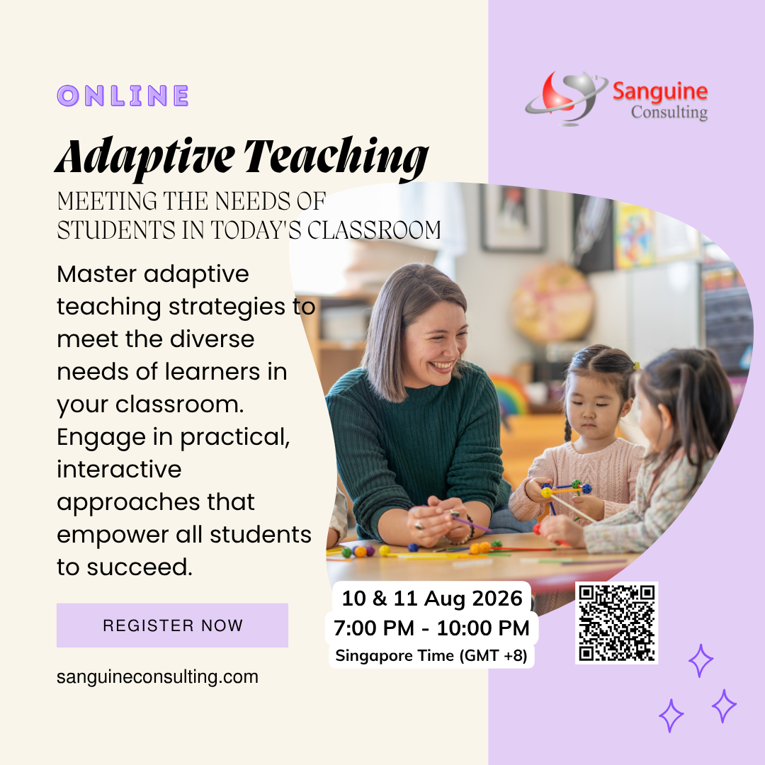 - Implementing Differentiated Instruction in Classrooms (Early/Elementary) – 24 Feb 2026 – 25 Feb 2026 – 9:00 am – 4:00 pm – Singapore