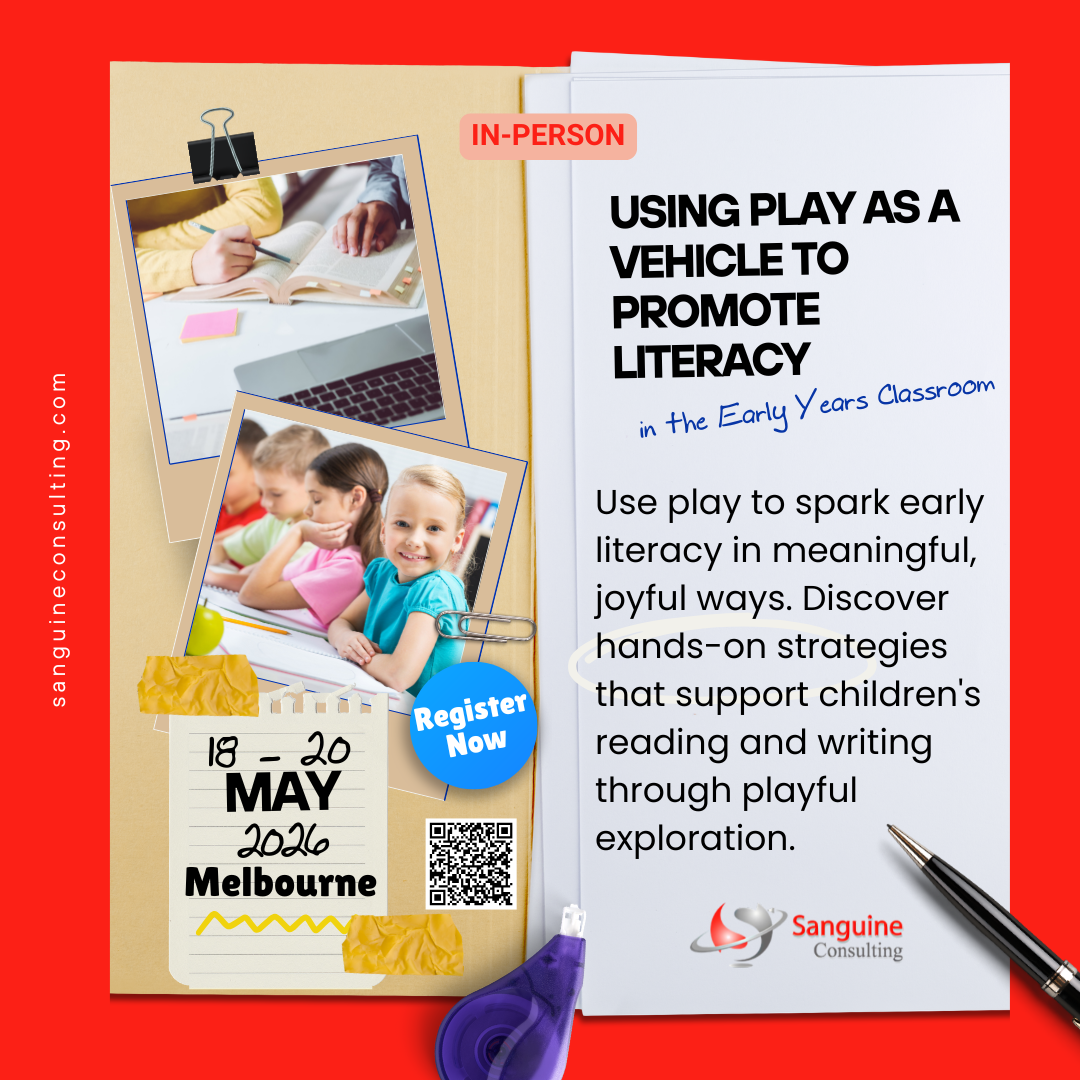 - Using Play as a Vehicle to Promote Literacy in the Early Years Classroom – 18 May 2026 – 20 May 2026 – 9:00 am – 4:00 pm – Australia