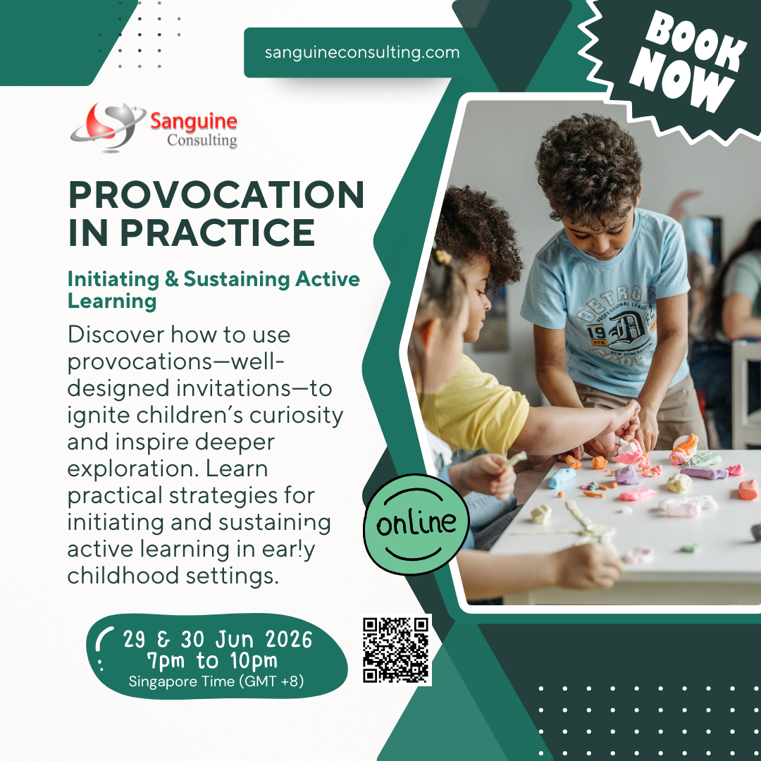 - Using Provocation a Primer for Active Learning in Early Years – 15 Apr 2026 – 16 Apr 2026 – 9:00 am – 4:00 pm – Singapore